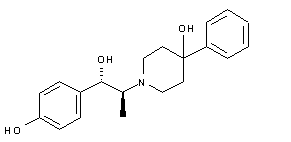 4-Hydroxypropiophenone (I) was protected as the triisopropylsilyl ether (II) and subsequently brominated with elemental bromine in CCl4. The resultant bromo ketone (III) was subsequently coupled with 4-hydroxy-4-phenylpiperidine (IV) to afford the racemic amino ketone (V). This was stereoselectively reduced with NaBH4 in EtOH yielding the threo-amino alcohol (VI). Then, desilylation of (VI) with tetrabutylammonium fluoride furnished the racemic phenol compound. Resolution into the enantiomers has been reported by formation of the corresponding D-tartaric acid salts. Finally, the title product was obtained by dissolving D-(-)-tartaric salt (VII) in water in the presence of methanesulfonic acid