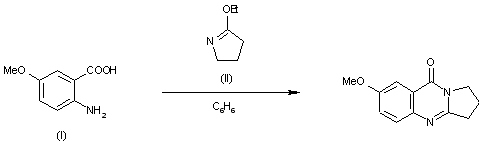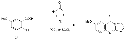 A new method for the synthesis of compound 73/602 has been reported: By cyclocondensantion of 5-methoxyanthranilic acid (I) with 2-pyrrolidinone (II) in the presence of POCl3 or SOCl2.