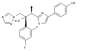ER-30346 is synthesized by thiazole ring formation of (2R,3R)-3-(2,4-difluorophenyl)-3-hydroxy-2-methyl-4-(1H-1,2,4-triazol-1-yl)thiobutanamide (I) and 4-bromoacetylbenzonitrile (II) by means of reflux in methanol. The thioamide (I) is obtained with excellent yield from a chiral nitrile (III) by heating with diethyl dithiophosphate in aqueous medium.