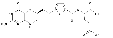 After removal of the Boc protecting group of (XIV), the resultant free amine spontaneously cyclized to the lactam (XV) in methanolic solution. Lactam (XV) was O-alkylated with trimethyloxonium fluoroborate, yielding the lactim ether (XVI), which was condensed with guanidine (XVII) to produce the pyridothiazine (XVIII). Hydrolysis of the ethyl ester of (XVIII), followed by coupling of the resultant acid (XIX) with L-glutamic acid diethyl ester (XX), furnished amide (XXI). The ester groups of (XXI) were finally hydrolyzed with NaOH to give the title compound.