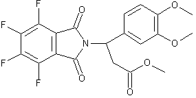Condensation of 3,4-dimethoxybenzaldehyde (I) with malonic acid (II) in the presence of ammonium acetate afforded 3-amino-arylpropionic acid (III), which was esterified with MeOH and SOCl2 to give (IV). Finally, condensation with tetrafluorophthalic anhydride (V) in refluxing AcOH provided the target phthalimide.