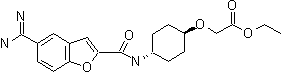Pinner reaction of ethyl 5-cyano-2-benzofurancarboxylate (I) gave imidate (II) and subsequent treatment with ethanolic ammonia afforded amidine (III). After basic hydrolysis of the ester group of (III), protection with benzyl chloroformate provided the benzyloxycarbonyl derivative (IV). Coupling of (IV) with ethyl trans-3-(4-aminocyclohexyl)propionate (V) in the presence of EDC and HOBt yielded amide (VI). Finally, hydrogenolysis of the benzyloxycarbonyl protecting group of (VI) provided the title amidino ester.