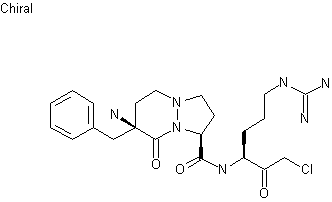The reaction of phenylalanine methyl ester (I) with benzaldehyde (II) and TEA in dichloromethane gives the aldimine (III), which is condensed with allyl bromide (IV) by means of n-BuLi in THF yielding the adduct (V). Treatment of (V) with HCl in methanol cleaves the benzylidene protecting group to afford the alpha-allylphenylalanine methyl ester (VI), which is reprotected with Boc2O and NaHCO3 in THF providing the carbamate (VII). The ozonolysis of (VII) with O3 in MeOH/CH2Cl2 gives the aldehyde (VIII), which is cyclized with hydrazine in refluxing THF yielding the tetrahydropyridazinone (IX). Hydrogenation of (IX) with H2 over PtO2 in methanol affords the hexahydropyridazinone (X), which is cyclocondensed with ethyl acrylate (XI) and formaldehyde to furnish the pyrazolopyridazine (XII). Hydrolysis of the ester group of (XII) with LiOH in THF/water gives the acid (XIII), which is finally condensed with N-omega(4-methoxytrityl)-L-arginylchloromethane (XIV) by means of isobutyl chloroformate and NMM in THF yielding, after working up, a diastereomeric mixture of amides, from which the target diastereomer is obtained by column chromatography.