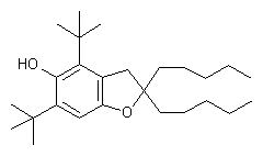 The condensation of 4-acetoxy-3,5-di-tert-butylphenol (I) with 2-chloro-N-(hydroxymethyl)acetamide (II) by means of H2SO4 in Ac-OH gives 4-acetoxy-3,5-di-tert-butyl-2-(2-chloroacetamidomethyl)phenol (III), which is hydrolyzed with HCl in ethanol to yield 4-acetoxy-2-/aminomethyl)-3,5-di-tert-butylphenol (IV). The oxidation of (IV) by means of hexamethylenetetramine (HMTA) affords the aldehyde (V), which is submitted to a Grignard condensation with 6-undecylmagnesium bromide (VI) in THF, followed by dehydration with conc. HCl to provide 4-acetoxy-3,5-di-tert-butyl-2-(2-pentyl-1-heptenyl)phenol (VII). The cyclization of (VII) by means of BF3/Et2O in dichloromethane gives the dihydrobenzofuran (VIII), which is finally deacetylated by reduction with LiAlH4 in THF to provide the target phenol.