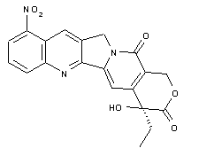 This compound can be obtained in two different ways: 1) By direct nitration of camptothecin (I) with nitric acid in sulfuric acid. 2) By direct nitration of camptothecin (I) with different inorganic nitrates (or mixtures of inorganic nitrates) in sulfuric acid. 3) The reaction of 2,6-dinitrobenzaldehyde (II) with ethylene glycol (III) and p-toluenesulfonic acid in refluxing toluene gives the corresponding ethylene ketal (IV), which is reduced with sodium sulfide in refluxing ehanol/water yielding 2-amino-6-nitrobenzaldehyde ethylene ketal (V). The hydrolysis of (V) with aqueous sulfuric acid affords 2-amino-6-nitrobenzaldehyde (VI), which is finally cyclized with the tricyclic ketone (VII) in refluxing acetic acid (the same cyclization can be performed with the ketal (V) and the ketone (VII).