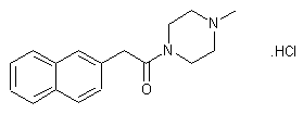 2-(2-Naphthyl)acetic acid (I) is activated as the corresponding acid chloride (II) upon refluxing with SOCl2. Subsequent condensation of acid chloride (II) with N-methyl piperazine (III) affords the title amide.