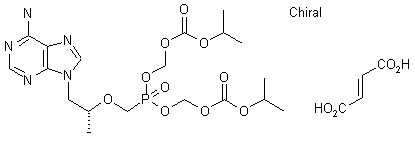 The reaction of chloromethyl chloroformate (I) with isopropyl alcohol (II) by means of pyridine or triethylamine in ether gives the mixed carbonate (III), which is then condensed with (R)-PMPA (IV) by means of diisopropyl ethyl-amine in DMF.