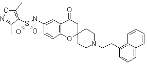 Friedel-Crafts acetylation of acetaminophen (I) using acetyl chloride and AlCl3 gave acetophenone (II). Subsequent condensation of (II) with N-(tert-butoxycarbonyl)-4-piperidone (III) in the presence of pyrrolidine provided the spirochroman-2,4'-piperidine (IV), from which the diamine (V) was obtained by acid hydrolysis. The piperidine amino group of (VI) was then alkylated with 1-(2-bromoethyl)naphthalene (VI) to afford (VII). Finally, condensation of the remaining amino group of (VII) with the sulfonyl chloride (VIII) furnished the title sulfonamide.