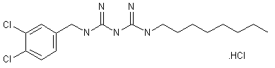 OPB-2045 can be obtained by several related ways: 1) The addition of 3,4-dichlorobenzylamine hydrochloride (I) to sodium dicyanamide (II) in refluxing acetonitrile gives 1-(3,4-dichlorobenzyl)-3-cyanoguanidine (III), which is then condensed with octylamine hydrochloride (IV) in refluxing mesitylene. 2) The treatment of S,S'-dimethyl(cyanoimino)dithiocarbonate (V) with aqueous ammonia and further reaction with 3,4-dichlorobenzylamine hydrochloride (I) yields intermediate (III), which is then condensed with (IV) as before. 3) By condensation of 3,4-dichlorobenzylamine hydrochloride (I) with 1-cyano-3-octylguanidine (VI) in refluxing mesitylene.