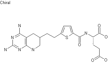 Pyridopyrimidinone (I) was condensed with triazole (II) in the presence of 4-chlorophenyl dichlorophosphate and pyridine to afford (III). Further reaction of (III) with ammonia in dioxan gave amino compound (IV), which was submitted to a Heck reaction with N-(2-bromothien-5-yl)-L-glutamic acid diethyl ester (V) in the presence of palladium catalyst and CuI to provide the disubstituted acetylene (VI). Hydrogenation of both acetylene group and pyridine ring of (VI) over Pd/C gave intermediate (VII). The amide and ester groups of (VII) were finally hydrolyzed with 1 N NaOH to furnish the title compound.