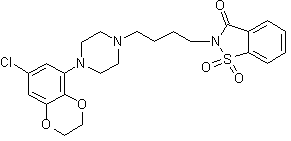 The title compound was prepared by alkylation of 1-(7-chloro-2,3-dihydro-1,4-benzodioxin-5-yl)piperazine (I) with N-(4-bromobutyl)saccharin (II) in the presence of K2CO3 in methylethylketone (MEK).