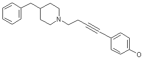 4-Benzylpiperidine (I) was alkylated with propargyl tosylate (II) to afford the N-propynyl piperidine (III). Subsequent coupling of (III) with 4-iodophenol (IV) in the presence of Pd(PPh3)4 in pyrrolidine produced the corresponding propynyl phenol.