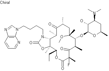 The title compound was prepared by stereoselective fluorination of the known ketolide (I) at position 2 by means of N-fluorosulfonimide and NaH.