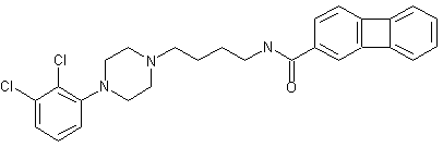 Dichlorophenylpiperazine (III) was prepared from aniline (I) by dehydrative cyclization with diethanolamine (II) in the presence of P2O5 and Et3N-HCl at 200 C. Alkylation of piperazine (III) with N-(4-bromobutyl) phthalimide (IV) gave (V), and subsequent hydrazinolysis of the phthalimide provided the (4-aminobutyl)piperazine (VI). Finally, condensation of (VI) with fluorene-2-carboxylic acid (VII) yielded the target amide.