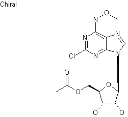 Reaction of dichloropurine (I) with O-methylhydroxylamine hydrochloride and N-ethyldiisopropylamine in dioxan at 50 C yielded the N-methoxy derivative (II). Subsequent treatment with a catalytic amount of NaOMe in methanol at room temperature provided a mixture of 2-chloro-N-methoxyadenosine (III) and monoacetate (IV), which were separated by flash chromatography. Treatment of monoacetate (IV) with alpha-acetoxyisobutyryl bromide (V) in acetonitrile at low temperature yielded bromide (VI), which on further treatment with 1,5-diazabicyclo[4.3.0]non-5-ene (DBN) gave the didehydrocompound (VII). Finally, reaction with NaOMe in methanol at 50 C provided the title compound.