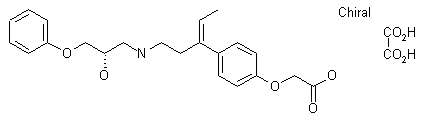 Hydrazinolysis of phthalimido derivative (I) afforded amine (II), which was condensed with (phenoxymethyl)oxirane (III) in boiling isopropanol to give amino alcohol (IV). After hydrolysis of the tert-butyl ester group of (IV), the resultant compound (V) was converted to the title hemioxalate salt upon treatment with oxalic acid.