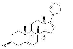 The Vilsmeier-Haack reaction of 3-beta-acetoxyandrost-5-en-17-one (I) using POCl3 and DMF produced a mixture of the vinyl chloride (II) and its formyl derivative (III). After chromatographic separation, the chlorine atom of (III) was displaced with 1,2,3-triazole (IV) to afford the desired 1-triazolyl compound (V) along with the 2-triazolyl regioisomer (VI), which were separated by flash chromatography. Cleavage of the formyl group from compound (V) was carried out by treatment with bis(triphenylphosphine)rhodium(I)carbonyl chloride and 1,3-bis(diphenylphosphino)propane in hot xylenes to furnish (VII). The acetate ester group was finally hydrolyzed with methanolic KOH.