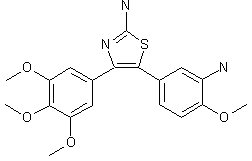Wittig reaction of phosphonium bromide (I) with 4-methoxy-3-nitrobenzaldehyde (II) in the presence of NaOMe provided an approximately equimolecular mixture of Z- and E-stilbenes (III) and (IV), from which the E-isomer was isolated by crystallization. Stilbene (IV) was converted to bromohydrin (V) by treatment with N-bromosuccinimide in aqueous DMSO. Further Swern oxidation of (V) with DMSO-trifluoroacetic anhydride (TFAA) yielded bromoketone (VI), which was then cyclized with thiourea (VII) in the presence of K2CO3 in DMF to give aminothiazole (VIII). Finally, the nitro of (VIII) group was reduced to the target amine by treatment with Zn in AcOH.