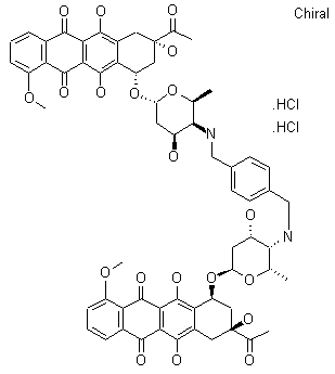 Condensation of two molecules of daunorubicin hydrochloride (I) with a,a'-dibromo-p-xylene (II) in the presence of Na2CO3 in DMF-CH2Cl2 at room temperature afforded the bis-daunorubicin derivative, which was purified by column chromatography and precipitated as the dihydrochloride from a MeOH-Et2O solution.