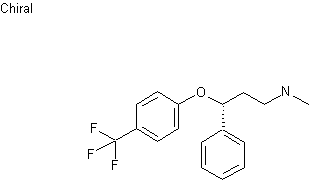 The reduction of omega-chloropropiophenone (I) with NaBH4 in ethanol gives 3-chloro-1-phenyl-1-propanol (II), which is treated with butyric anhydride and pyridine in dichloromethane, yielding the corresponding racemic ester (III). The optical resolution of (III) with immobilized lipase B from Candida antarctica (CALB) affords a mixture of unreacted (S)-ester and (R)-alcohol (IV), which are separated by column chromatography. The condensation of alcohol (IV) with 4-(trifluoromethyl)phenol (V) by means of PPh3 and diethyl azodicarboxylate (DEAD) in THF gives the corresponding ether (VI), which is finally treated with methylamine in refluxing ethanol.