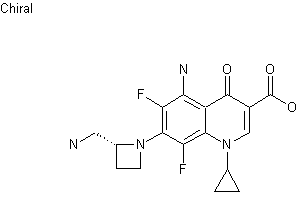 The optical resolution of 1-benzylazetidine-2-carboxamide (I) with L-tartaric acid in the usual way gave 1-benzylaetidine-2(R)-carboxamide (II), which is reduced with borane-THF complex yielding 2(R)-(aminomethyl)-1-benzylazetidine (III). The debenzylation of (III) with H2 over Pd/C in ethanol affords 2(R)-(aminomethyl)azetidine (IV), which is finally condensed with 5-amino-1-cyclopropyl-6,7,8-trifluoro-4-oxo-1,4-dihydroquinoline-3-carboxylic acid (V) by means of 1,8-diazabicyclo[5.4.0]undec-7-ene (DBU) in hot pyridine.