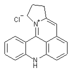 Treatment of 9-chloroacridine (I) with NaN3 in aqueous acetone affords azidoacridine (II), which is submitted to a cycloaddition reaction with 5-chloro-1-pentynyl (III) to yield 9-(triazol-1-yl)acridine (IV). Finally, (IV) is cyclized by thermolysis in hot diphenyl ether.