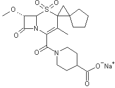 1) Treatment of 6-azopenicillanate (I) with boron trifluoroetherate in a mixture of methanol and methylene chloride gives 6alpha-methoxy penicillanate (II), which on oxidation with peracetic acid gives the corresponding 1beta-oxide (III). Ring opening of the oxide (III) by heating with 2-mercaptohenzothiazole in toluene gives the intermediate (IV), which on cyclization with bromine in methylene chloride gives 2beta-bromomethyl penicillanate (V). Rearrangement of (V) with pyridine in dimethyl sulfoxide gives the cephem intermediate (VI). The sulfone derivative (VII) is obtained by oxidizing (VI) with peracetic acid in methylene chloride. Introduction of the double bound at C-2 position of the sulfone (VII) is achieved by heating with dimethylamine hydrochloride in a mixture of tert-BuOH methylene chloride and formaldehyde. Reaction of the intermediate (VIII) with diazo cyclopentane, generated in situ by treatment of cyclopentyl hydrazono with silver (I) oxide, gives 2,2,2-tricholoroethyl-7alpha-methoxy-2-spiro-(2'-spirocyclopentyl)cyclopropyl-3-methyl-3-cephem-4-carboxylate-1,1-dioxide (IX). Removal of the trichloroethyl group by treatment with Zn/glacial acetic acid gives the corresponding acid (X). Reaction of the acid (X) with oxalyl chloride followed by treatment with 4-tert-butoxycarbonyl piperidine in methylene chloride gives the intermediate (XV). Hydrolysis of the tert-butyl ester with formic acid gives the free acid (XVI). Treatment with sodium carbonate in water gives the corresponding sodium salt of Syn-1396 (XVII).