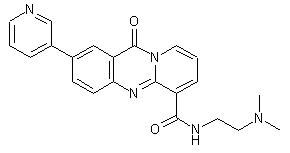 Condensation of 2-amino-4-iodobenzoic acid (I) with 2-chloronicotinic acid (II) in refluxing EtOH in the presence of HCl yields pyridoquinazoline acid derivative (III), which is then condensed with N,N-dimethylethylenediamine (IV) in CH2Cl2 using BOP as coupling reagent to provide (V). Reaction of 2-bromopyridine (VI) in Et2O with n-BuLi and trimethylborate, followed by treatment with EtOH and HOAc, gives 3-pyridinyl boronic acid (VII), which is finally coupled to (V) in an Na2CO3 solution via a Suzuki coupling catalyzed by Pd(PPh3)4.