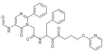 Acidic Boc group cleavage from (XIX) produced amine (XX). This was converted to formamide (XXI) upon treatment with in situ-generated formic acetic anhydride. Selective hydrolysis of the acetate ester of (XXI) was then achieved by treatment with K2CO3 in MeOH. The resultant keto alcohol (XXII) was finally oxidized to the title diketone employing DMSO in the presence of EDC and pyridinium trifluoroacetate