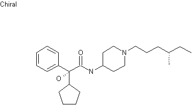 The chiral precursor (IV) was obtained by two alternative procedures. Addition of cyclopentylmagnesium bromide (II) to ethyl phenylglyoxylate (I) afforded the racemic hydroxyester (III). Basic hydrolysis of the ethyl ester group of (III) gave the corresponding carboxylic acid, which was resolved using cinchonidine.