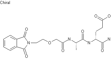The reaction of phthalimidocarboxylic acid ethyl ester (I) with 2-(2-aminoethoxy)ethanol (II) in THF gives N-[2-(2-hydroxyethoxy)ethyl]phthalimide (III), which is oxidized with CrO3/sulfuric acid in acetone yielding 2-(phthalimidoethoxy)acetic acid (IV). The condensation of (IV) with L-alanyl-D-isoglutamine benzyl ester (V) by means of phenylphosphoryl azide (DPPA) and triethylamine in DMF gives N-[2-(2-phthalimidoethoxy)acetyl]-L-alanyl-D-isoglutamine benzyl ester (VI), which is finally debenzylated by hydrogenation over Pd/C in acetic acid.