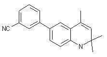 The Skraup reaction of 4-bromoaniline (I) with acetone and iodine afforded dihydroquinoline (II), which was protected as the tert-butyl carbamate (III) with Boc2O in the presence of n-BuLi. Lithium-halogen exchange in (III), followed by treatment with trimethyl borate provided boronic acid (IV). Subsequent Suzuki coupling of (IV) with 3-bromobenzonitrile (V) using tetrakis(triphenylphosphine)-palladium produced the 6-arylquinoline (VI). The Boc group of (VI) was finally removed with trifluoroacetic acid to furnish the title compound.