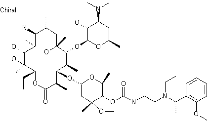 The C-9 amino group of erythromycylamine (I) was protected by reaction with Boc2O to give the corresponding tert-butyl carbamate (II). Subsequent acetylation of the 2'-hydroxyl group of (II) with Ac2O provided acetate (III). Then, condensation of (III) with carbonyldiimidazole at the 4''-hydroxyl group afforded the acyl imidazole (IV). The chiral diamine (VIII) was synthesized by reductive condensation of 2-phthalimido acetaldehyde (V) with the (S)-phenylethylamine derivative (VI), followed by hydrazinolysis of the resulting phtalimide (VII). Diamine (VIII) was then coupled with acyl imidazole (IV) to afford carbamate (IX).