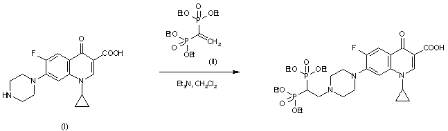 The title compound was synthesized by condensation of cyprofloxacin (I) with tetraethyl ethenylidenebisphosphonate (II) in the presence of Et3N in CH2Cl2