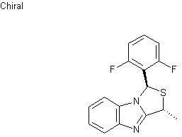 The cyclization of a mixture of phenylene-1,2-diamine (I), 2-sulfanylpropionic acid (II) and 2,6-difluorobenzaldehyde (III) in refluxing benzene gives a mixture of the two diastereomers of 1-(2,6-difluorophenyl)-3-methyl-1H,3H-thiazolo[3,4-a]benzimidazole, from which the trans-(racemic)-(IV) isomer has been isolated by silica gel column chromatography. The enantiomeric resolution has been performed by chiral HPLC affording the (1R, 3R)-(IV) isomer, the target compound.