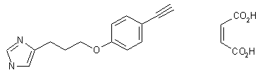 4-Iodophenol (I) was protected as the trimethylsilyl ether (II) with Me3SiCl and then coupled with (trimethylsilyl)acetylene (III) using palladium catalyst and CuI to afford the O-desilylated ethynylphenol (IV). This was condensed under Mitsunobu conditions with N-Boc-imidazolylpropanol (VI), prepared from imidazolylpropanol (V) and Boc2O, to afford ether (VII). Deprotection of the Boc group of (VII) with methanolic hydrazine at r.t. yielded a mixture of (VIII) and the fully desilylated analogue (IX), which was isolated by column chromatography and finally crystallized as the maleate salt from EtOH-Et2O.