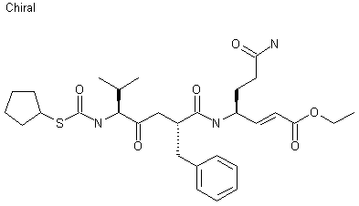Acid (XV) was coupled with protected amino acid (XVI) to give amide (XVII), and the Boc protecting group of (XVII) was then removed under acidic conditions. The resulting amine (XVIII) was condensed with cyclopentyl chlorothioformate (XIX) to provide thiocarbamate (XX). Finally, the title compound was obtained by trifluoroacetic acid-promoted cleavage of the trityl protecting group.
