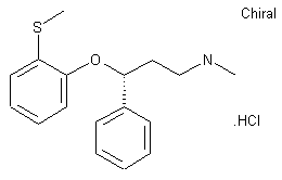 Reduction of 3-chloropropiophenone (I) with NaBH4 produced 3-chloro-1-phenyl-1-propanol (II). Subsequent Mitsunobu coupling of (II) with 2-(methylthio)phenol (III) in the presence of DEAD and PPh3 afforded ether (IV). Finally, substitution of the halogen of (IV) for methylamine provided the corresponding secondary amine.