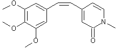 Reduction of N-methyl-2-pyridone-4-carboxylic acid (I) with LiBH4 provided alcohol (II), which was further oxidized to aldehyde (III) with MnO2. Wittig reaction of (III) with trimethoxybenzylphosphonium salt (IV) in the presence of NaOMe provided a mixture of E and Z olefins, from which the target Z isomer was isolated by column chromatography.