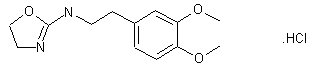 Acid-catalyzed condensation of ethanolamine (I) with urea (II) produced oxazolidinone (III). Subsequent reaction of (III) with triethyloxonium fluoborate yielded ethoxyoxazoline (IV). This was finally condensed with 2-(3,4-dimethoxyphenyl)- ethylamine to afford the title compound, which was isolated as the hydrochloride salt.