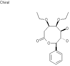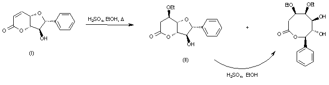 (+)-Almuheptolide-A (III) was either isolated from the methanolic extract of the powdered stem bark of Goniothalamus arvensis or obtained by semisynthesis from (+)-altholactone (I). Treatment of (I) with boiling EtOH containing H2SO4 provided a mixture of the ethoxy derivative (-)-etharvensin (II) and the eight-membered-ring lactone (III). Then, acetylation of (III) with Ac2O in pyridine yielded the title diacetate ester. The (-)-etharvensin (II) can be converted into the eight member-ring lactone (III) upon prolonged heating in H2SO4 /EtOH.