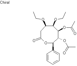 (+)-Almuheptolide-A (III) was either isolated from the methanolic extract of the powdered stem bark of Goniothalamus arvensis or obtained by semisynthesis from (+)-altholactone (I). Treatment of (I) with boiling EtOH containing H2SO4 provided a mixture of the ethoxy derivative (-)-etharvensin (II) and the eight-membered-ring lactone (III). Then, acetylation of (III) with Ac2O in pyridine yielded the title diacetate ester. The (-)-etharvensin (II) can be converted into the eight member-ring lactone (III) upon prolonged heating in H2SO4 /EtOH.