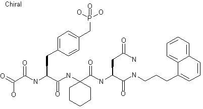 Horner-Emmons reaction of 1-naphthaldehyde (I) with triethyl phosphonoacetate (II) gave naphthyl propenoate (III), which was hydrogenated over Pd/C to afford propanoate (IV), and further reduced to alcohol (V) with LiAlH4. The required naphthyl propylamine (VIII) was then obtained by the sequence of conversion of (V) to mesylate (VI), displacement by NaN3, and reduction of the resulting azide (VII) with LiAlH4. After coupling of (VIII) with N-Boc-L-asparagine N-hydroxysuccinimidyl ester (IX) to give (X), the N-Boc group was deprotected using trifluoroacetic acid in CH2Cl2 to afford amine (XI). Subsequent coupling of (XI) with N-Boc-1-amino-1-cyclohexanecarboxylic acid (XII) by means of DCC and HOBt gave (XIII).
