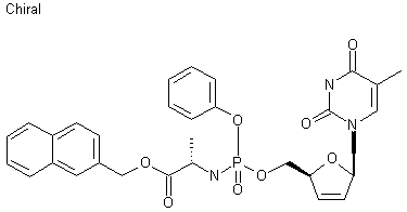 Title phosphoramidate was obtained by condensation of phenyl [(2-naphthylmethoxy)alanino]phosphorochloridate (I) with 2',3'-dideoxy-2',3'-didehydrothymidine (II) in the presence of N-methylmorpholine in THF at r.t.