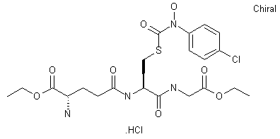 Treatment of 4-chlorophenyl chloroformate (I) with N-(4-chlorophenyl) hydroxylamine (II) produced the N-hydroxycarbamate (III). This was condensed with glutathione (IV) to afford thiocarbamate (V). Finally, both carboxylate groups of (V) were esterified in ethanolic HCl to provide the target diethyl ester.