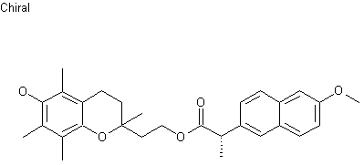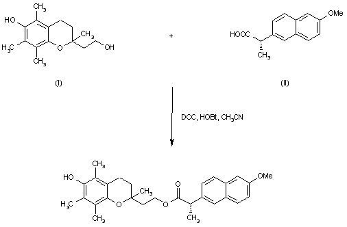 The title compound was prepared by coupling of 2-(3,4-dihydro-6-hydroxy-2,5,7,8-tetramethyl-2H-1-benzopyran-2-yl)ethanol (I) with (S)-naproxen (II) by means of DCC and HOBt in acetonitrile.