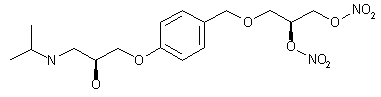 Alkylation of 4-[2,3-dinitroxy)propoxymethyl]phenol (I) with epichlorhydrin (II) in the presence of NaOH provided the corresponding epoxypropoxy derivative (III). Then, epoxide opening with isopropylamine (IV) in refluxing MeOH furnished the desired amino alcohol.
