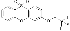 The condensation of 2-hydroxythiophenol (I) with 2,5-difluoronitro-benzene (II) in the presence of potassium tert-butoxide in DMF afforded 3-fluorophenoxathiin (III), which was oxidized to the sulfone (IV) using H2O2 and trifluoroacetic acid. Displacement of the fluorine atom of (IV) by 2,2,2-trifluoroethanol (V) employing either KH in DMF or KOt-Bu in acetonitrile then furnished the title compound.