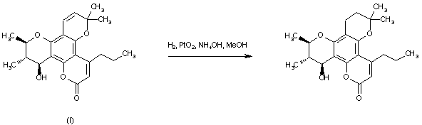 Calanolide A (I), a compound isolated from the tropical tree Calophyllym lanigerum, was selectively hydrogenated at the 7,8-double bond employing PtO2 poisoned with NH4OH to afford the title compound.