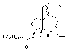 | 合成路线图解说明: Ketone (XVI) was treated with phenylselanyl chloride and LHMDS yielding the selenium derivative (XVII). Enone (XVIII) was then produced by oxidative elimination of the selenide (XVII). Reduction of the unsaturated ketone (XVIII) with NaBH4 in the presence of CeCl3 gave the 3-beta-allylic alcohol (XIX). This was acylated with myristoyl chloride (XX) to afford ester (XXI). Finally, acid deprotection of the silyl ether and the p-methoxyphenyl acetal of (XXI) furnished the title compound. |